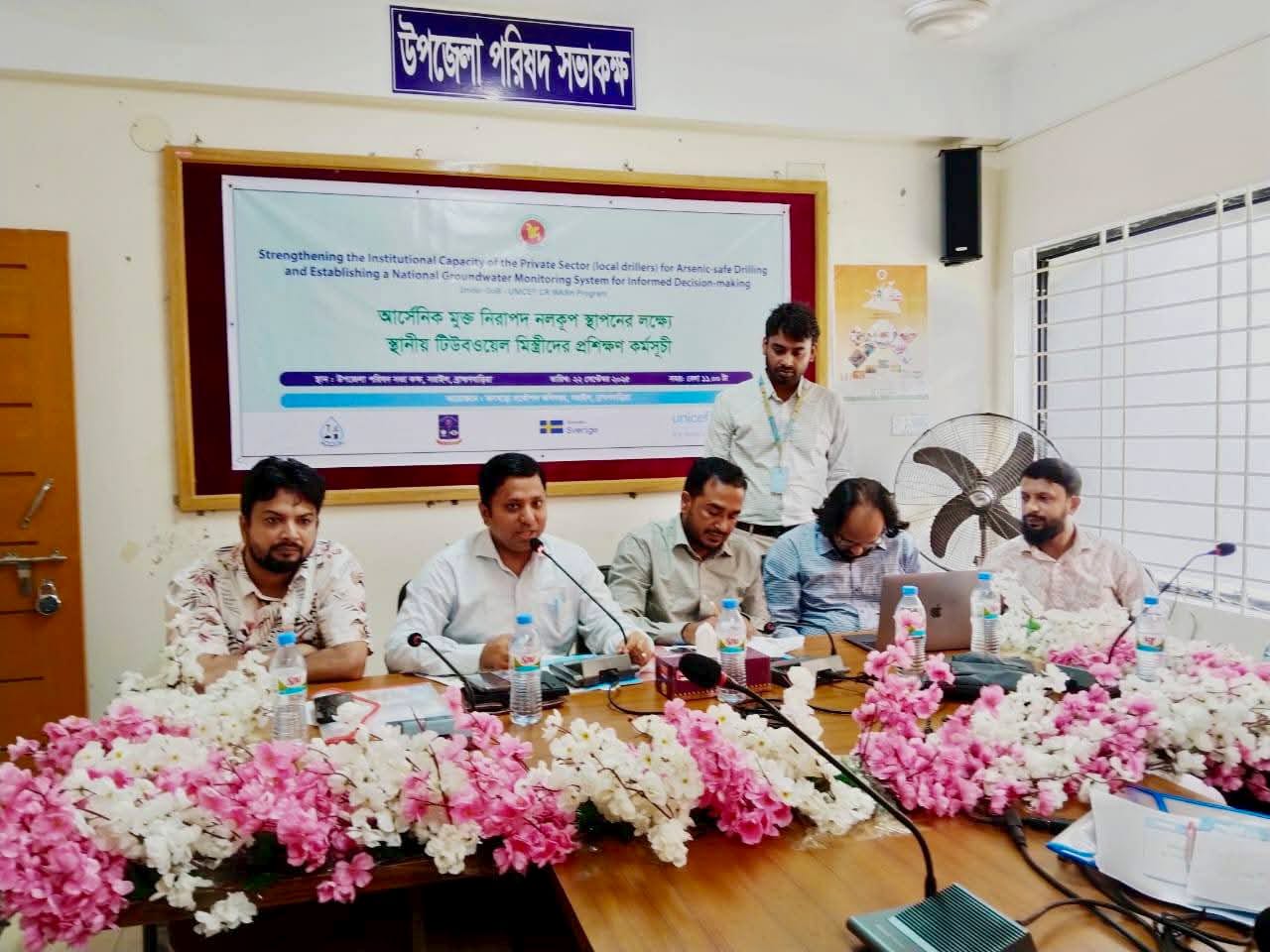 ব্রাহ্মণবাড়িয়া সরাইলে আর্সেনিক মুক্ত নিরাপদ নলকূপ স্থাপনের লক্ষ্যে স্থানীয় মিস্ত্রীদের প্রশিক্ষণ কর্মসূচি কর্মশালা অনুষ্ঠিত হয়েছে। আজ সোমবার (২২ সেপ্টেম্বর) ২০২৫ খ্রি. সরাইল উপজেলা পরিষদ হলরুমে সরাইল জনস্বাস্থ্য বিভাগের উদ্যোগে সকাল থেকে সরাইল উপজেলা বিভিন্ন প্রান্ত থেকে আগত ৩৯ নিউবওয়েল মিস্ত্রি দের কে নিয়ে এক প্রশিক্ষণ কর্মশালা অনুষ্ঠিত হয়েছে। ভার্কের এরিয়া ম্যানেজার মো.তাবিবুর রহমানের সঞ্চালনায় ও সরাইল জনস্বাস্থ্য অধিদপ্তরের সহকারী প্রকৌশলী রুপক মিয়ার সভাপতিত্বে প্রশিক্ষন কর্মশালা অনুষ্ঠিত হয়েছে।