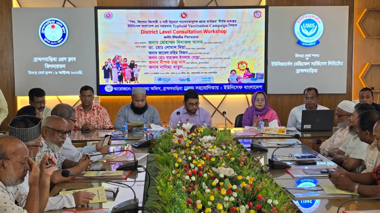 ব্রাহ্মণবাড়িয়ায় “শিশু, কিশোর-কিশোরী ও নারী উন্নয়নে সচেতনতামূলক প্রচার কর্যক্রম” প্রকল্পের আওতায় সোমবার সাংবাদিকদের নিয়ে টাইফয়েড টিকাদান বিষয়ক কর্মশালা অনুষ্ঠিত হয়েছে।
