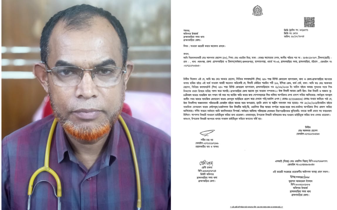 সোমবার (২০ অক্টোবর) বিকেলে ডা. আকতার হোসাইন, তৌহিদা শারমীন শর্মী নামে এক নারীর বিরুদ্ধে ব্রাহ্মণবাড়িয়া সদর মডেল থানায় জিডি করেন।