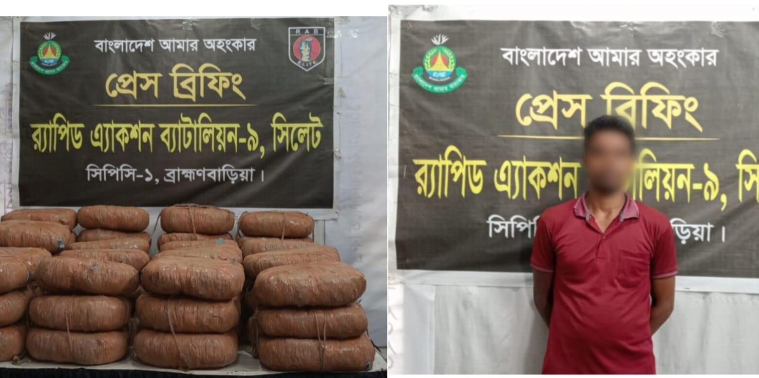 ব্রাহ্মণবাড়িয়ার আশুগঞ্জে র্যাবের অভিযানে ১০৫ কেজি গাঁজাসহ এক মাদক ব্যবসায়ীকে গ্রেফতার করেছে র্যাপিড অ্যাকশন ব্যাটালিয়ন র্যাব-৯।